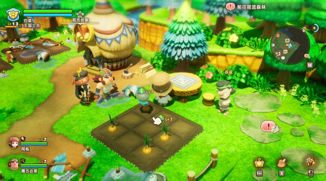 之所以《幻想生活i》的种田玩法不够纯粹,是因为这游戏的本质仍然是一款纯粹的ARPG冒险游戏。LEVEL-5将市面上所有常见的游戏元素逐一整合,并经过精简后,逐渐融入到这三张地图中,并对其进行了明确的划分。