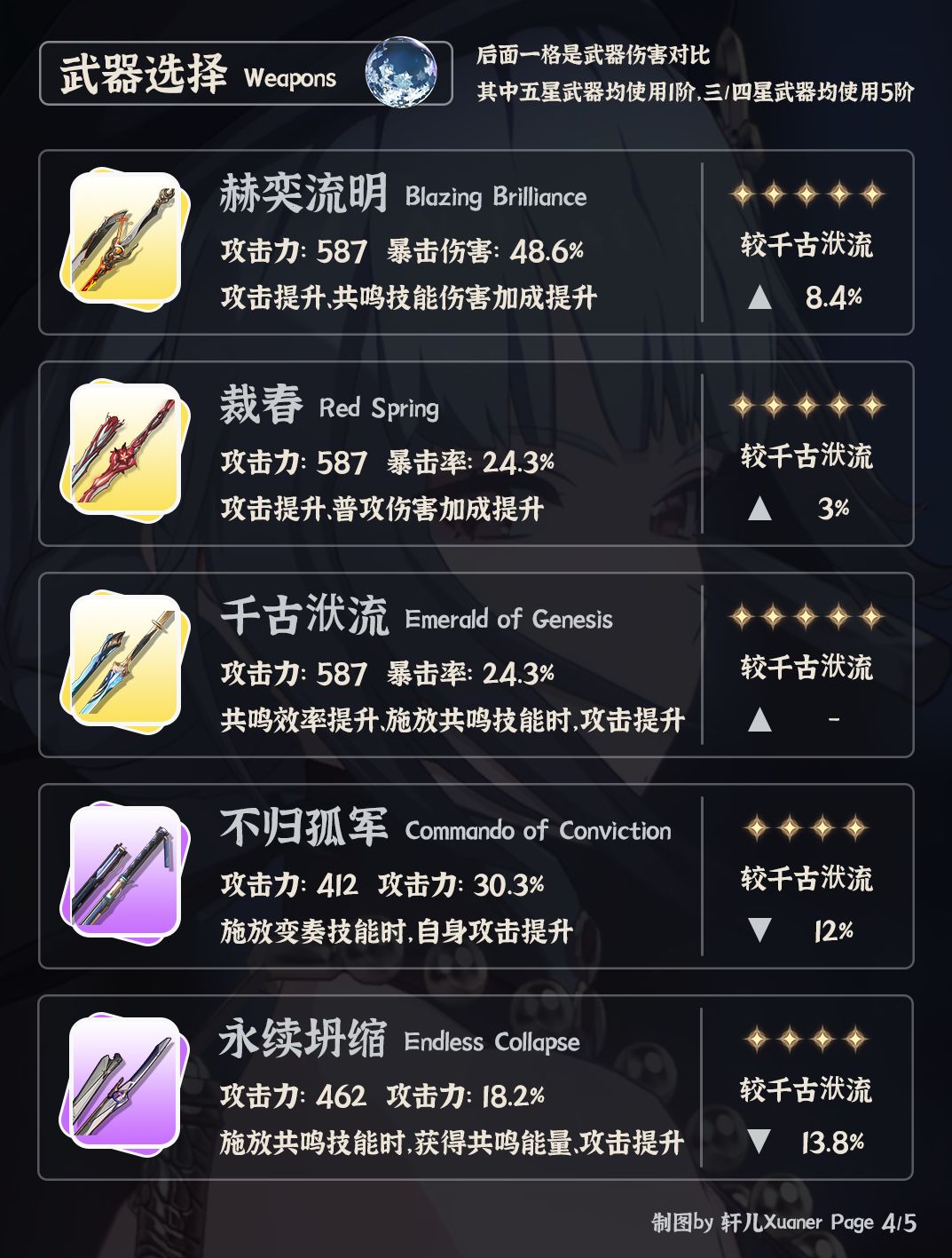 ⑤ 散华使用迅刀,首选常驻五星千古洑流。如果重点培养散华,氪佬或真爱党可以考虑用一手长离专武。