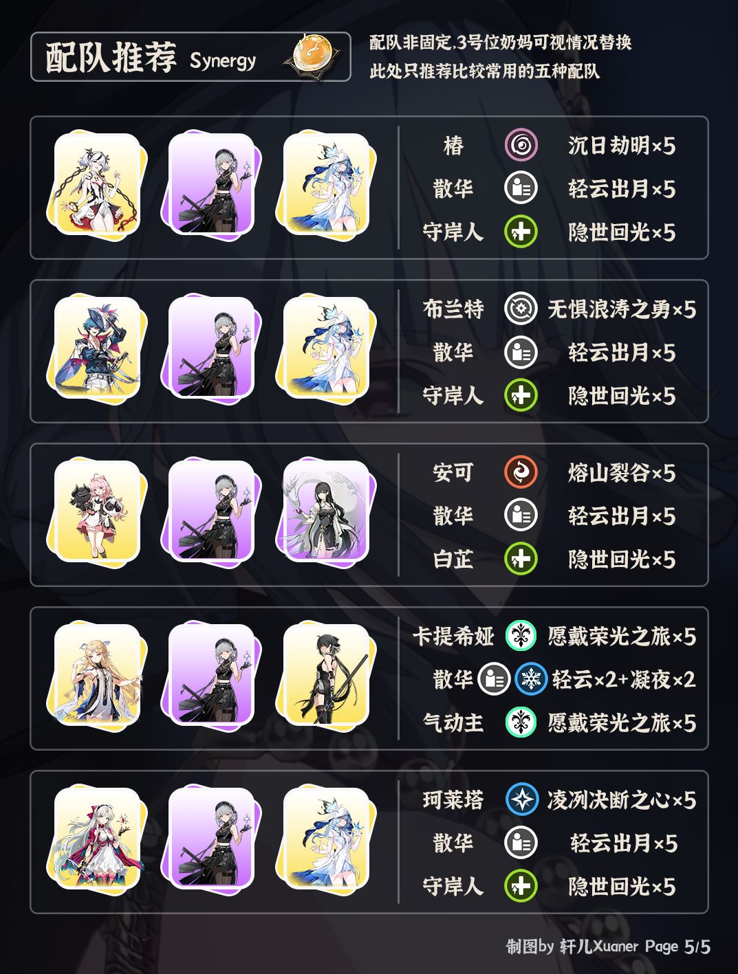 ⑥ 散华配队不必多说,一句话总结就是:如果你的主C没有最好的副C,用散华!散华是大部分主C最佳副C的下位替代。