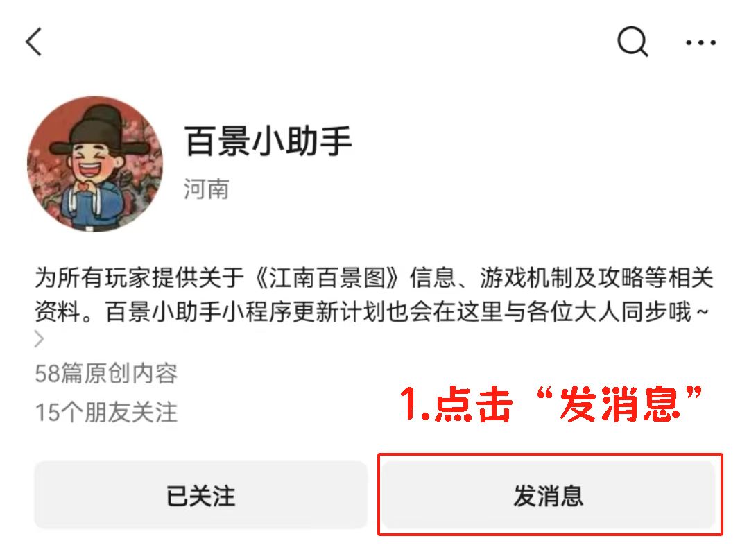 1.在“百景小助手”处点击“发消息”;
