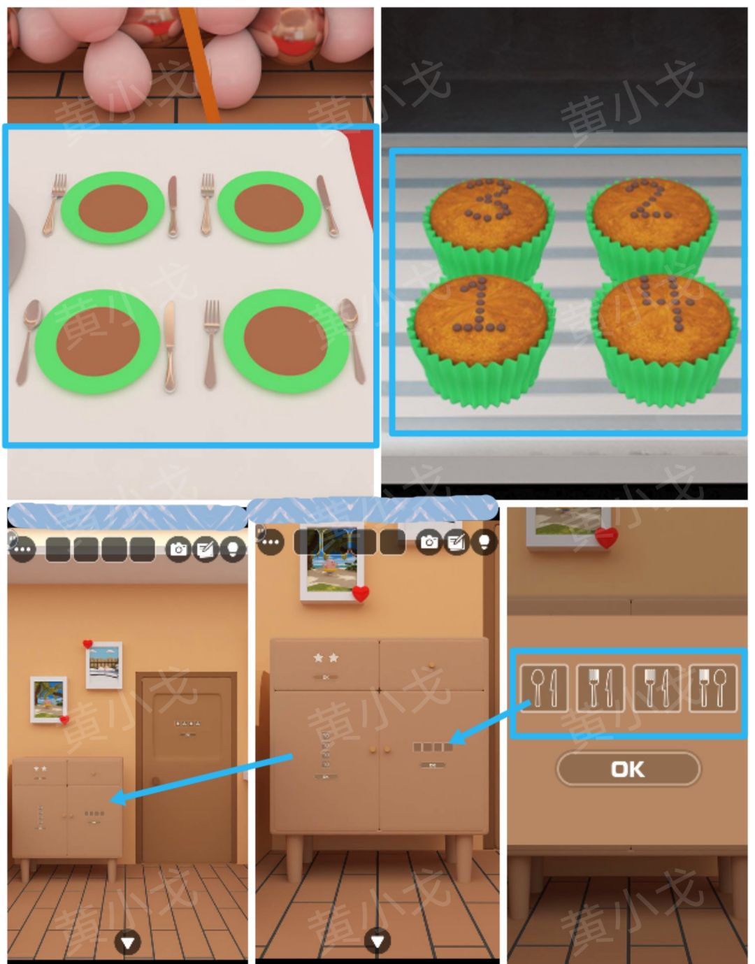 🔶[厨房]场景蛋糕的位置及上面的数字:左上-3,右上-2,左下-1,右下-4