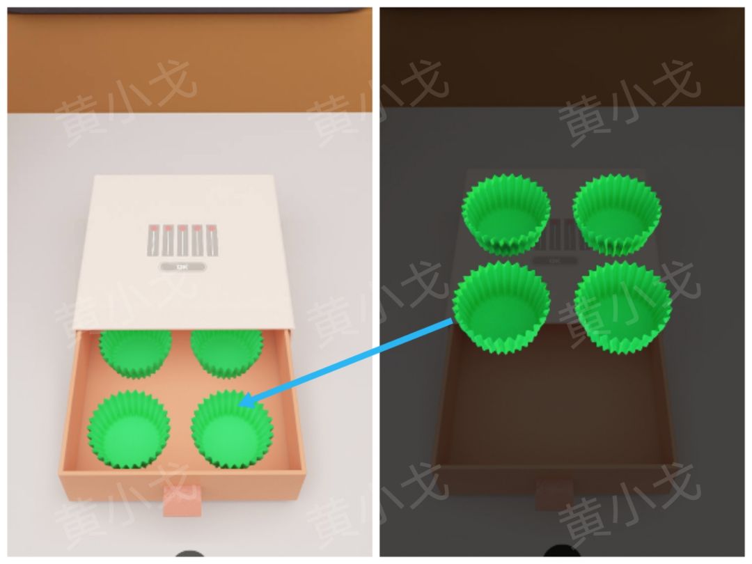 🔶烤好的蛋糕的位置及上面的数字:左上-3,右上-2,左下-1,右下-4