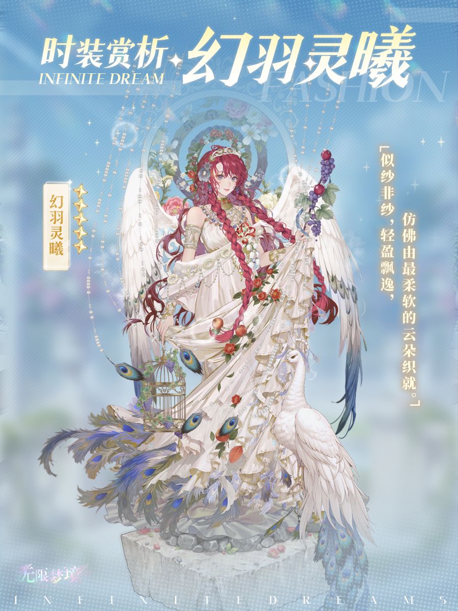 红发轻舞纯白羽翼,孔雀衔着花枝轻语。