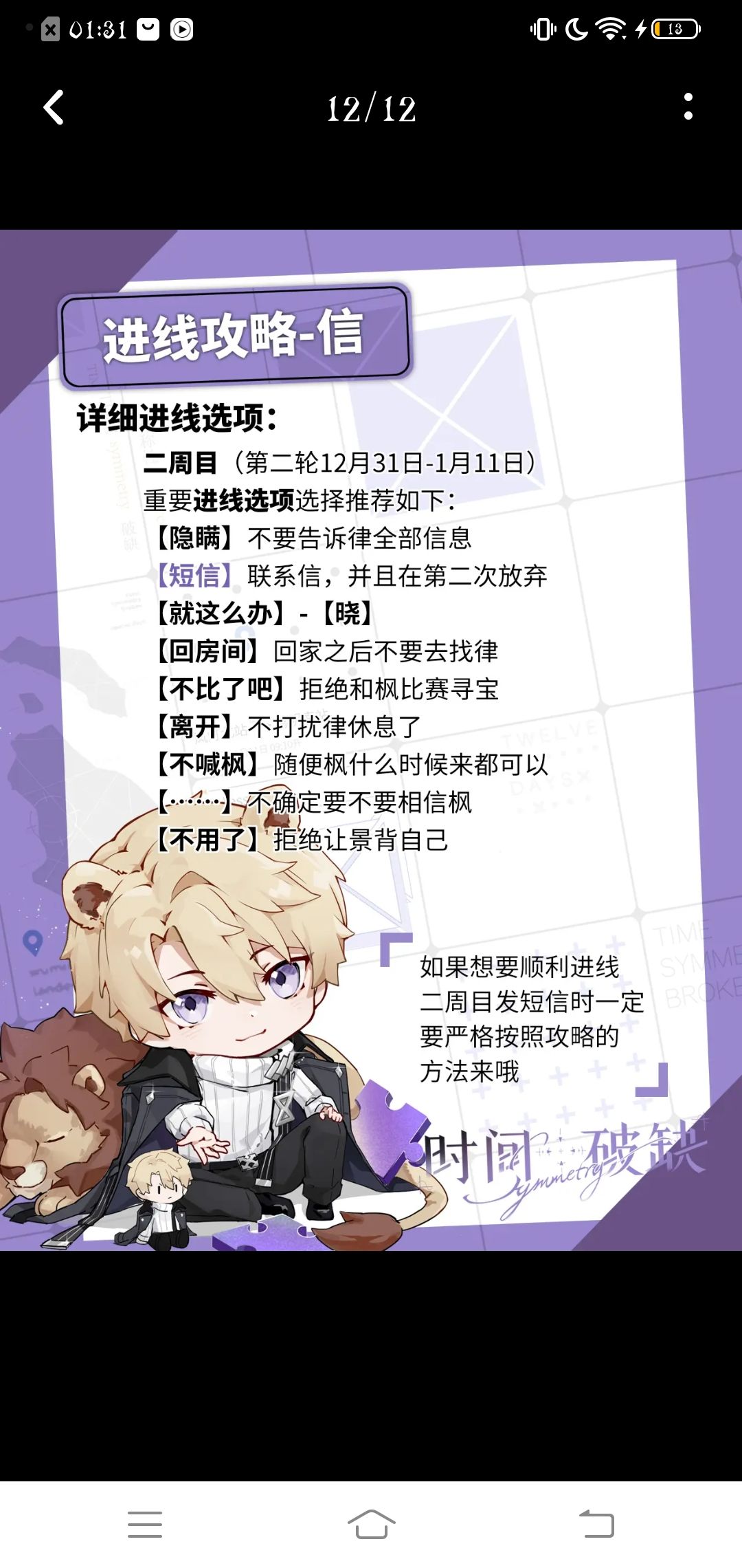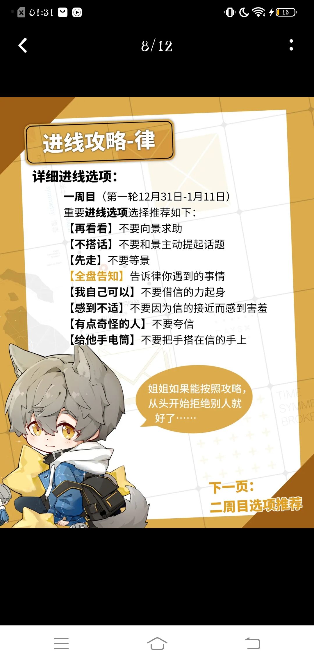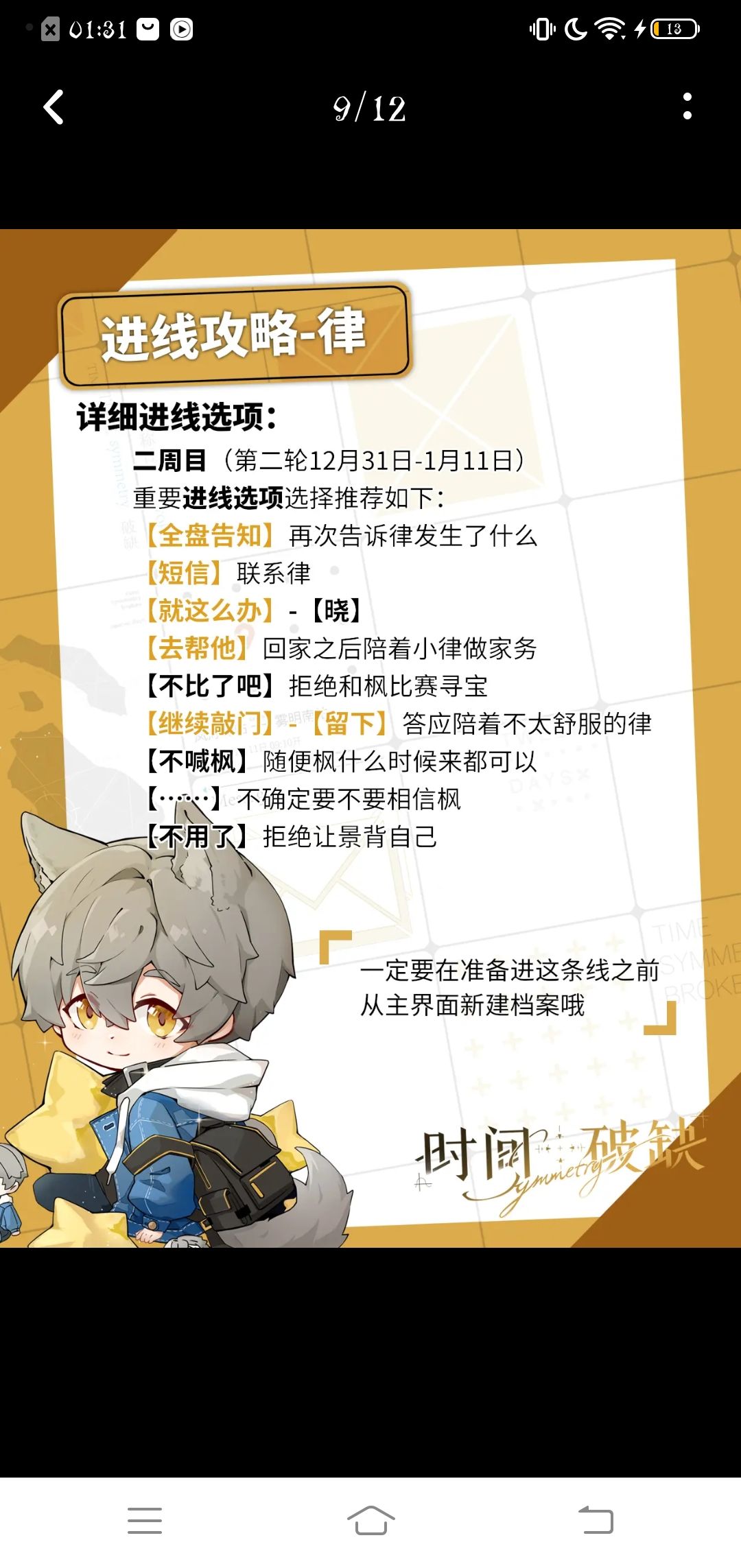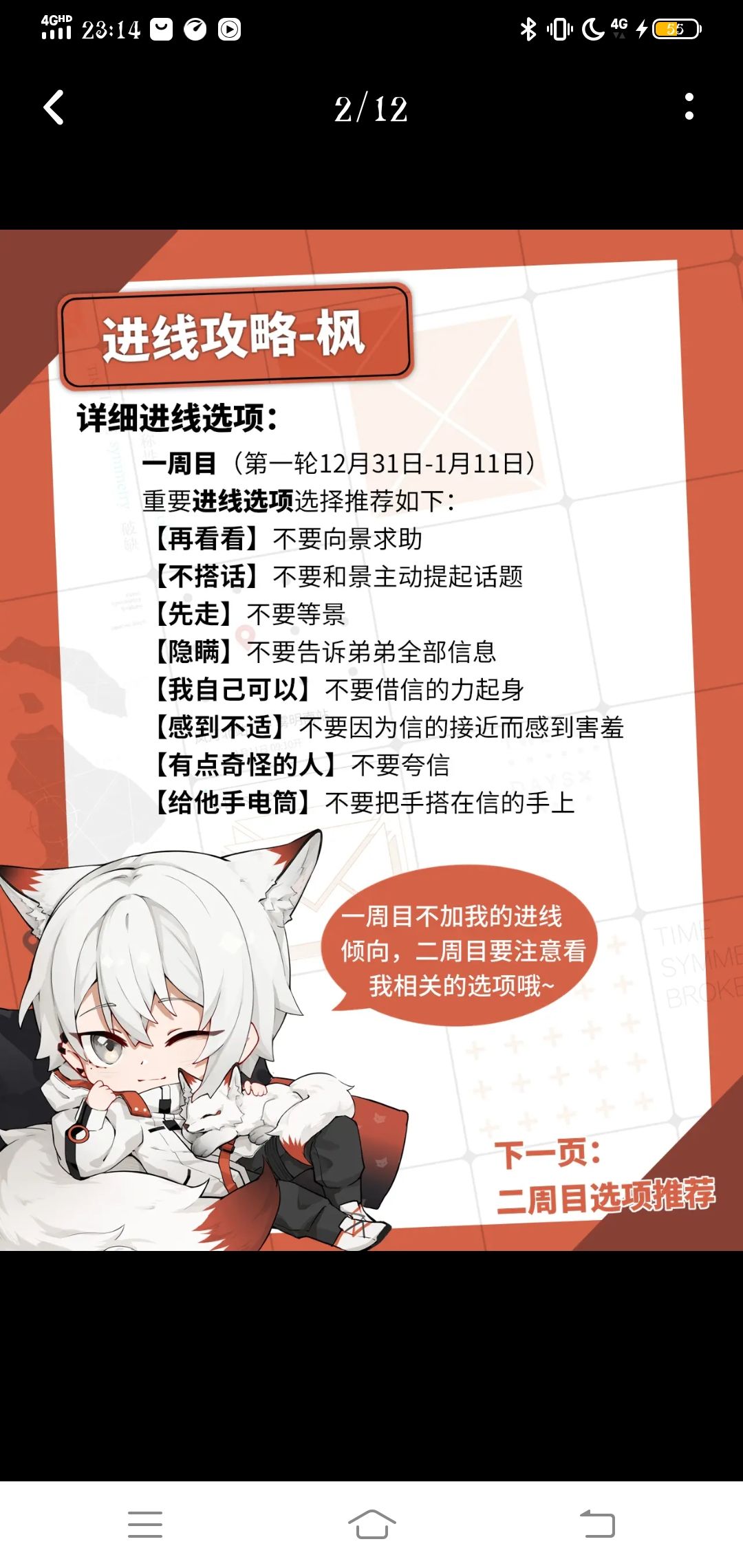 其实我本身对于这种分多个单线的乙女游戏不是很感冒,但是我无意中进入了枫的主线(第一次,没看攻略),单线对于每个角色的性格和过往都有非常细致的描写,其实玩家还是更倾向于知道第三次时间循环发生了什么(当然不包括那些专心研究剧情的[闭嘴])