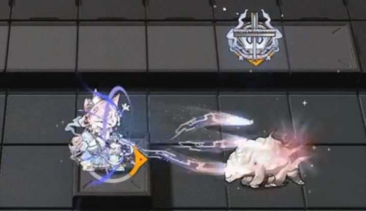 三技能的特效中木兰花的占比最多,箭矢改为大花簪样式,本体与打字机同时配有烟纹和纱纹,背景中也可以看到木兰树的图案,并且敌人的受击特效上也有烟纹和纱纹,夹杂一些细碎的木兰花瓣元素