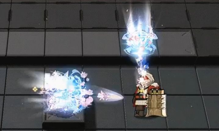 部署特效及普攻拖尾皆采用烟纹图案加渐变底色配合少量的花叶元素,敌人受击特效则多采用圆形光斑与光芒特效,而在攻击时选用原画中纱衣披肩的纹路,每个技能都略有区别