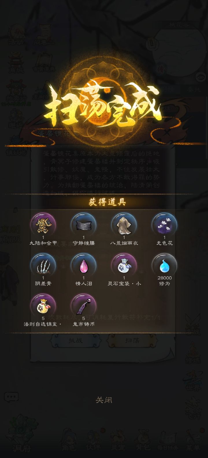洞府有几率掉装备(需要需要破禁符的推荐自己做破禁符,有概率开出金装备法宝,目前做不了破禁符的非氪佬直接刷了吧,50极品灵石有95以上开出没用的装备,只能熔炼),上品真元丹,回精丹,天阶石,补天石(内视各种)