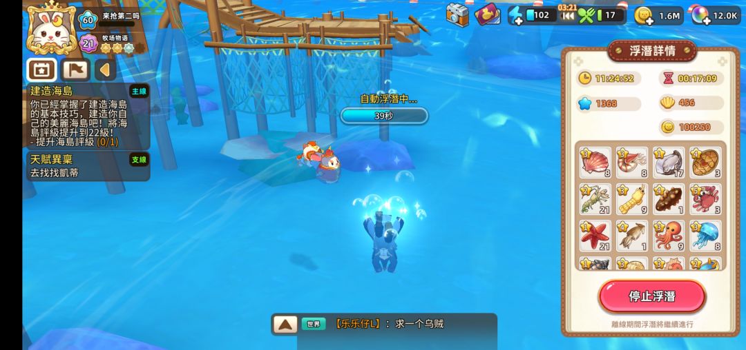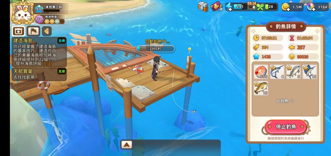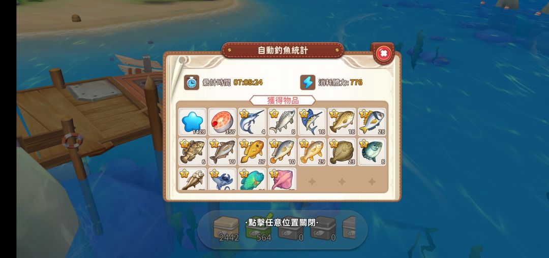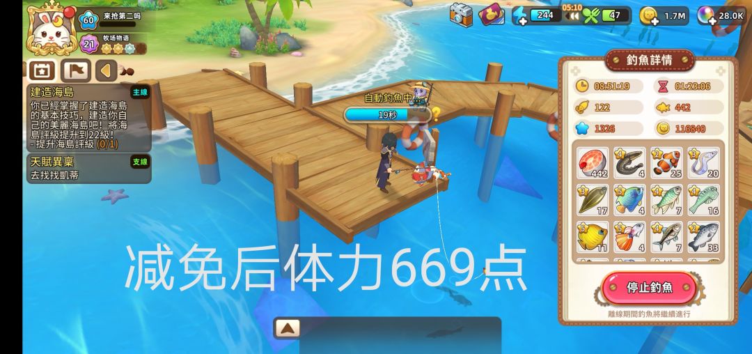 最后是艾薇(女you)钓点挂机收益情况(还是手残,减免后体力水印打上去了)。