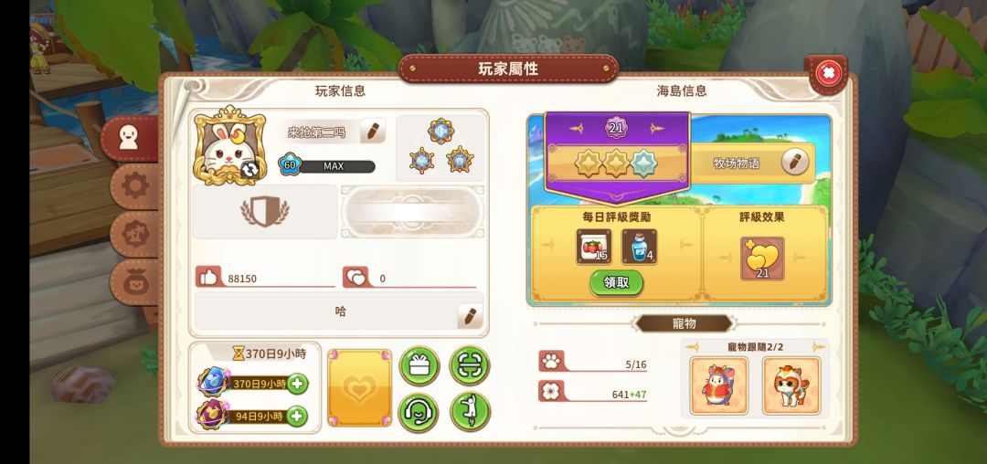 由图可见二星花蜜挂机收益毛利为71700金币,花蜜成本225*183=41175金币。体力消耗(体力减免折抵)549点,减免后体力438点,体力减免111点。据此可以测得: