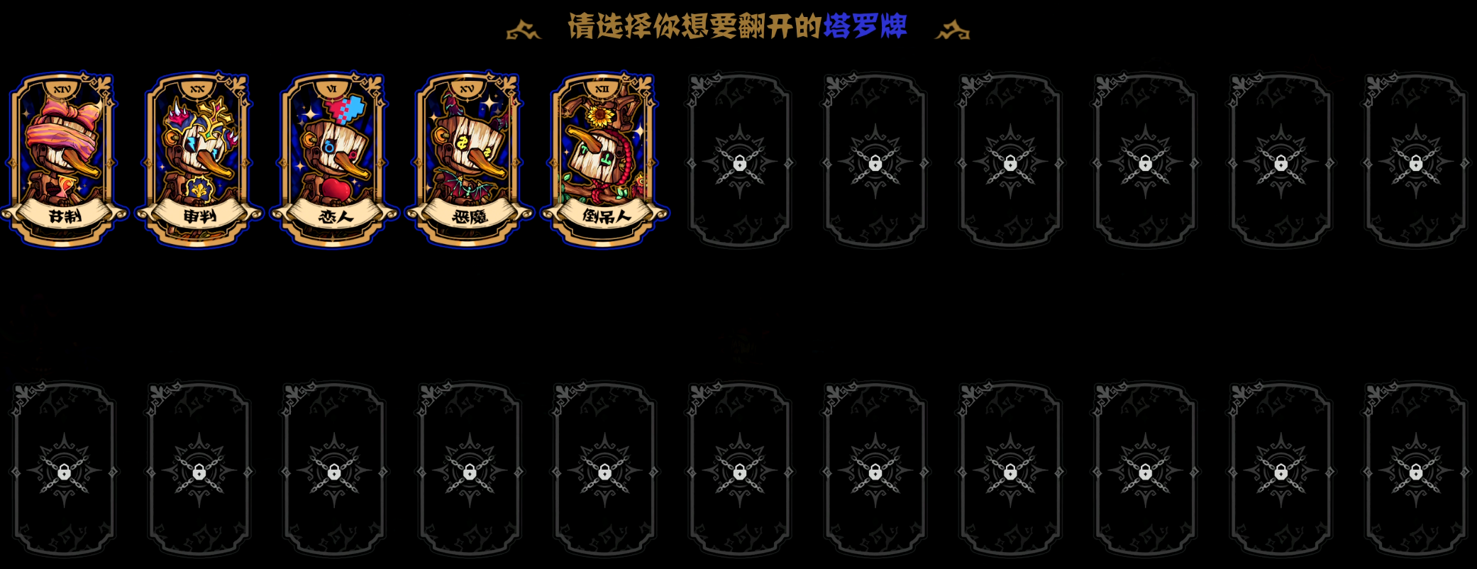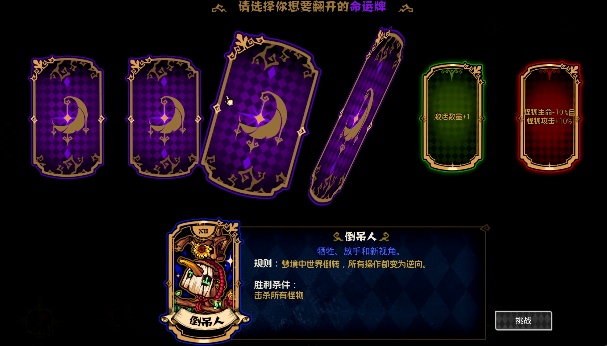 每个塔罗牌关卡都是随机出现的,附带的规则以及胜利条件也各不相同。