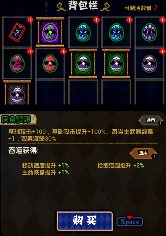 玩家在关卡中的每次升级、商店购买、塔罗牌关卡奖励等方式都可以获得“梦卵”。