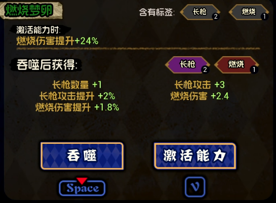 下方为被吞噬后的属性加成,可无限吞噬,属性也可以无限增加。前提是你梦卵数量够多。