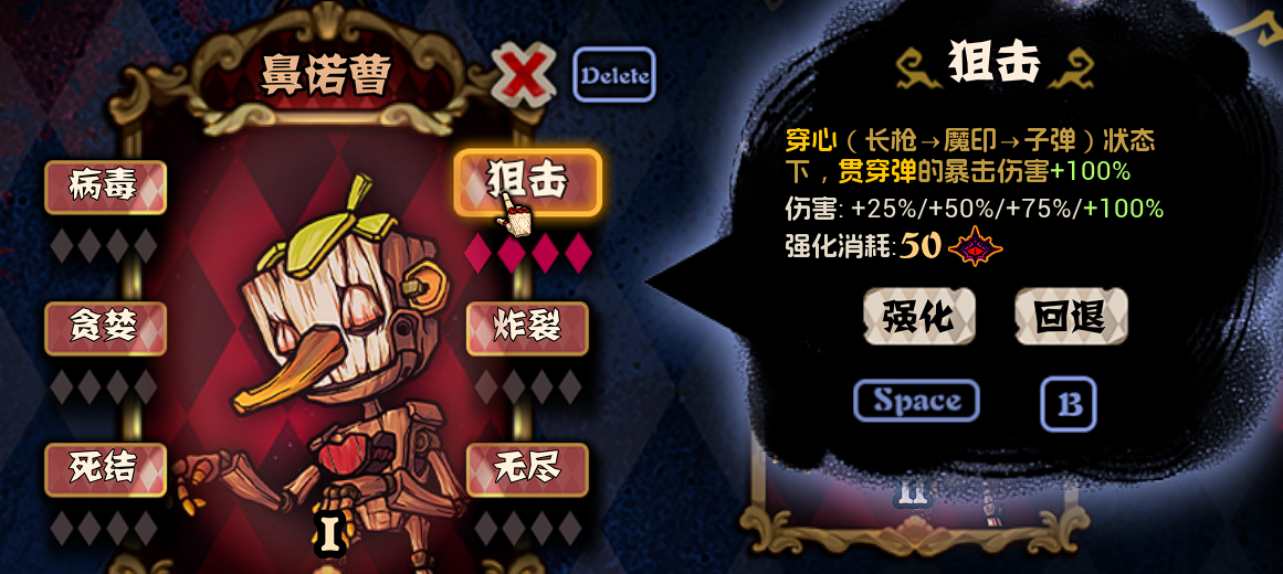 举个例子:比如魔印攻击到敌人时会散开一堆子弹造成伤害的同时再遍布一堆近战攻击的长枪,而长枪攻击时还会附带燃烧效果,燃烧造成的伤害则会出现百分百暴击等等(这里所说所有效果都可吞噬梦卵获得)。