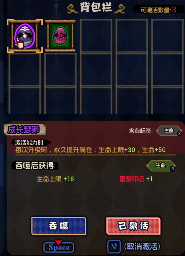 但是当获得之后,玩家可以在背包内看到其“吞噬”效果(是的,梦卵是可以直接吃掉的)。