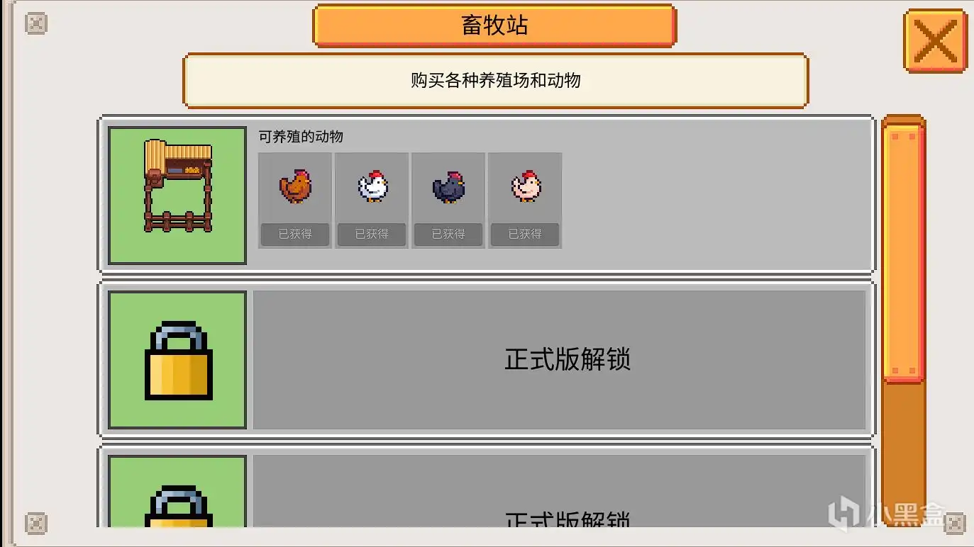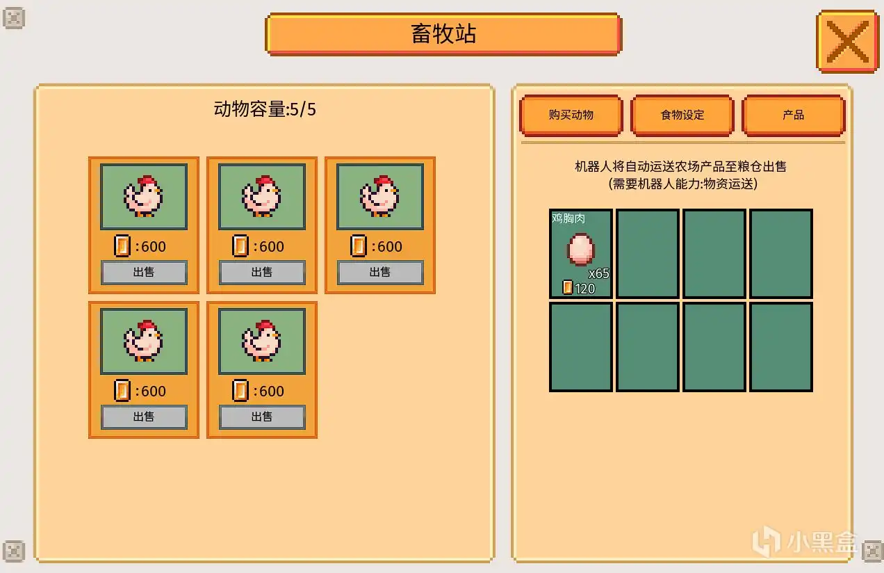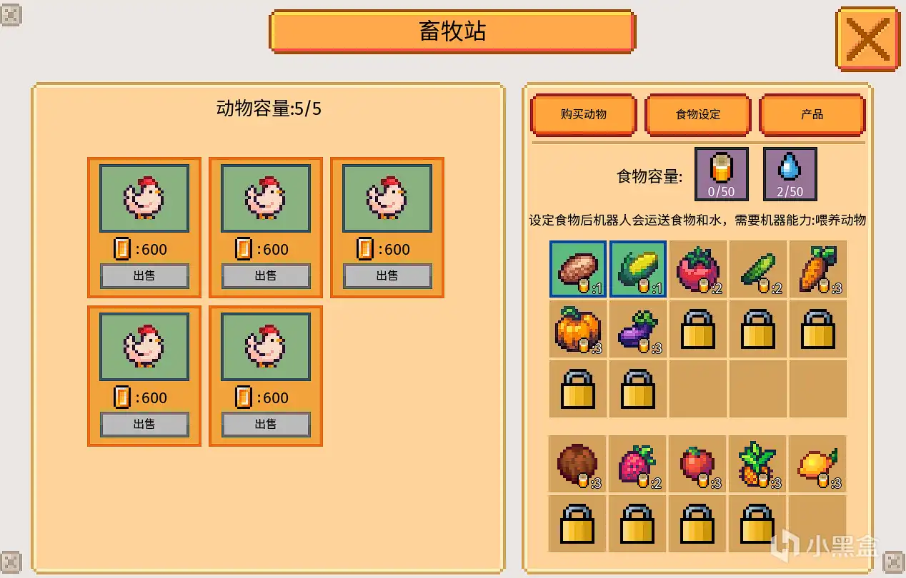 游戏在最后还会解锁“畜牧站”以及“鸡舍”。玩家可以在畜牧站购买小鸡,并放进鸡舍喂养。