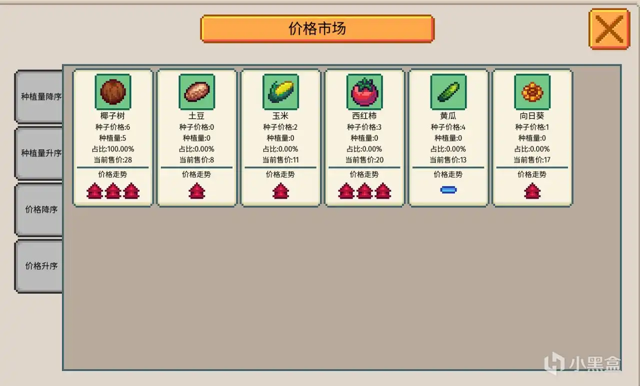 “数据中心”和“价格市场”的解锁可以让玩家看到当前哪些农作物卖的贵哪些卖的便宜(我到现在都不知道这些农作物究竟是卖给谁的...),以优先种植贵的农作物。