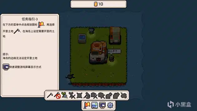 当建造完基础设施后天也变黑了,游戏也解锁了“种植”的选项。操作方法跟上面差不多,需要玩家点击“规划”里的“开垦士地”来挑选一片空地来开垦。注意记得给有“开垦”技能的小机器人分配技能哦~