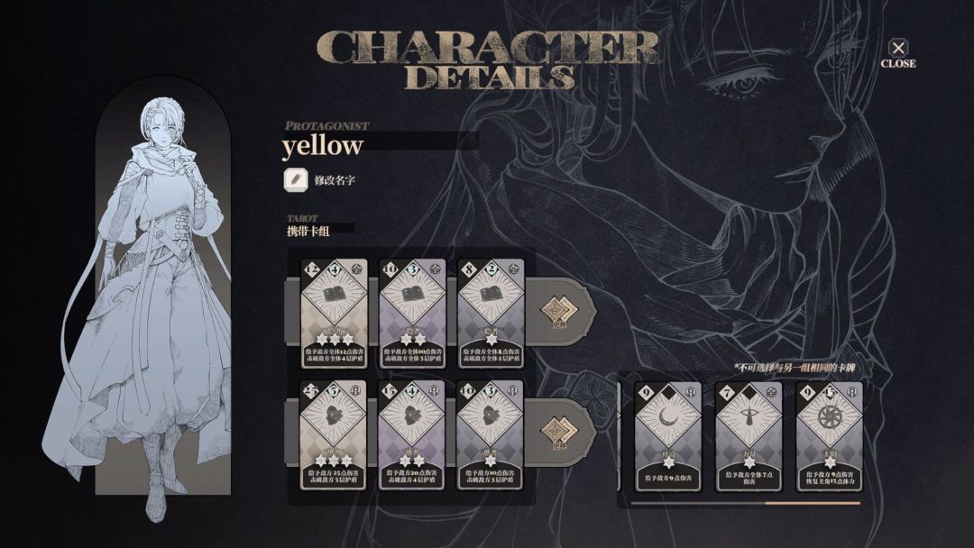 卡组的解锁需要玩家在剧情里与一些配角交好,为己所用才能解锁对应的塔罗牌,越到后面的卡牌越强力,特别是群攻加破坏护盾的,共有多种卡组供玩家解锁和游玩。但是游戏从头到尾,我只有一种机制,虽然加了一些设定,但是万变不离其宗,特别是在对面高血量的情况下,需要不断的找牌换牌等重复性操作,后期甚至有点厌烦,如果收集到的伙伴能有某种技能或者特性,让卡牌变得更加强力或者有机制的话,还挺好的,可惜只有卡组的不同。