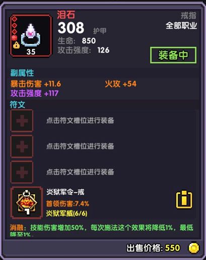 戒指属性:暴击/穿透/火功/爆伤,缺什么补什么