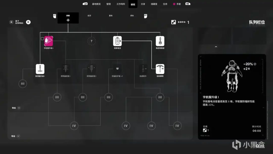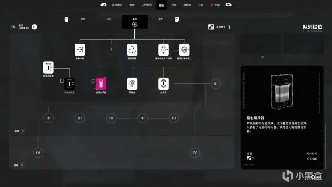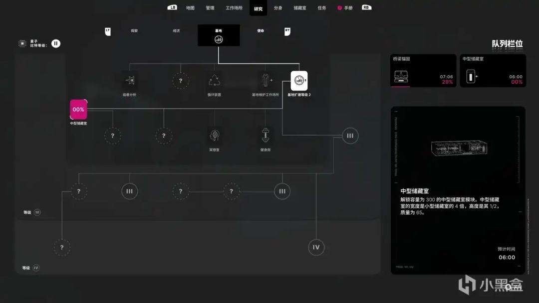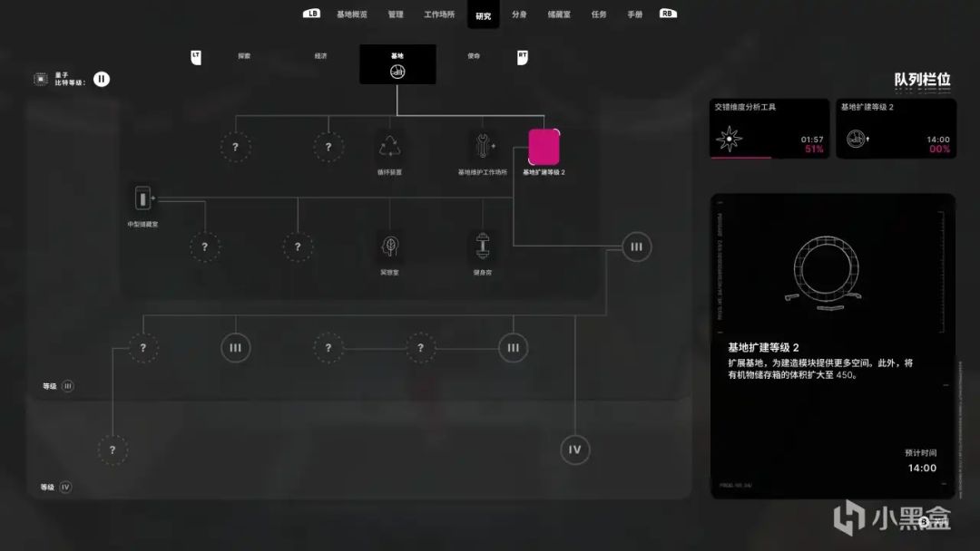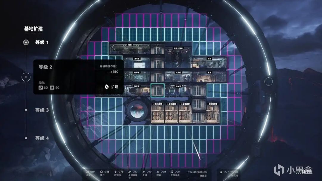 芯片修好后可以提升我们的比特等级,回到研究板块,选择基地扩建等级2。这个研究可以提升有机物的存储量。
