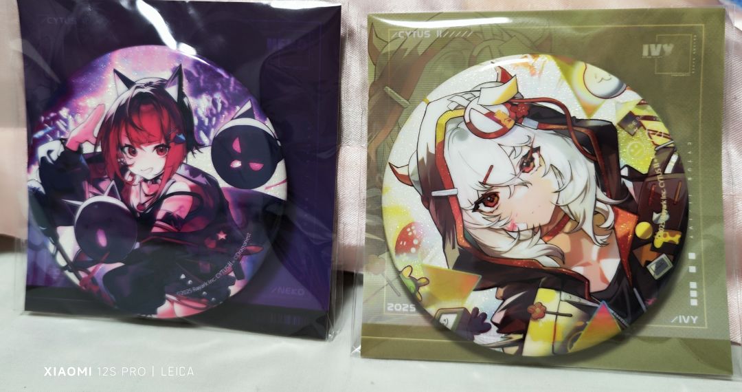 总共有这些东西,一张CD,6张明信片,两个徽章,3个挂饰,最后一张图的两个徽章是单独发货的,这个好像是买曲包送的,没有包含在预购礼盒里