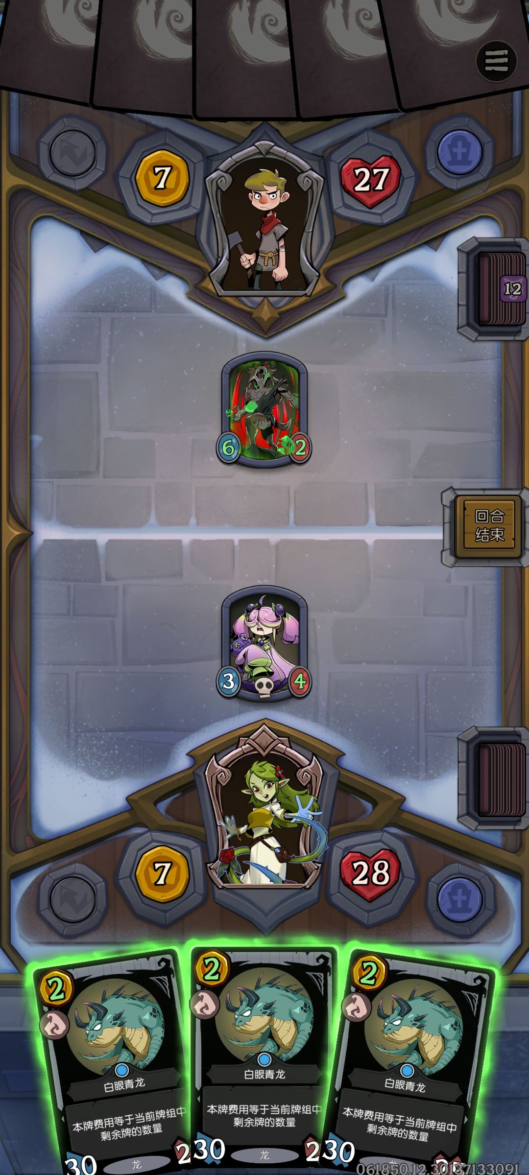 事情是这样的。早上看了一下牌库。发现一张很有意思的卡。青眼白龙。能力是费用等于牌堆数量。30攻25血。30攻击力这是一个对大部分角色都是能一击秒杀不触发15血效果的otk攻击力。如果快速的把卡组清空那是否就能在前中期快速的召唤3只布鲁艾滋外拓多拉贡。思路成立。于是我变开始挑牌。中午组了这套娱乐卡组。流程就是抽牌,保命,最后召唤三只布鲁艾滋外拓多拉贡秒了对面。仙人掌是清对面场和拖时间的好帮手。茄子用来拉牌还能加速光合作用。还有苦收和雾保命。最好用灭世清对面场,然后打出3只白龙就可以了。本质还是娱乐卡组。重新抽牌不满三是因为会把白龙丢墓里。可惜现在没有把白龙从墓回到卡堆的卡。不然会特别快