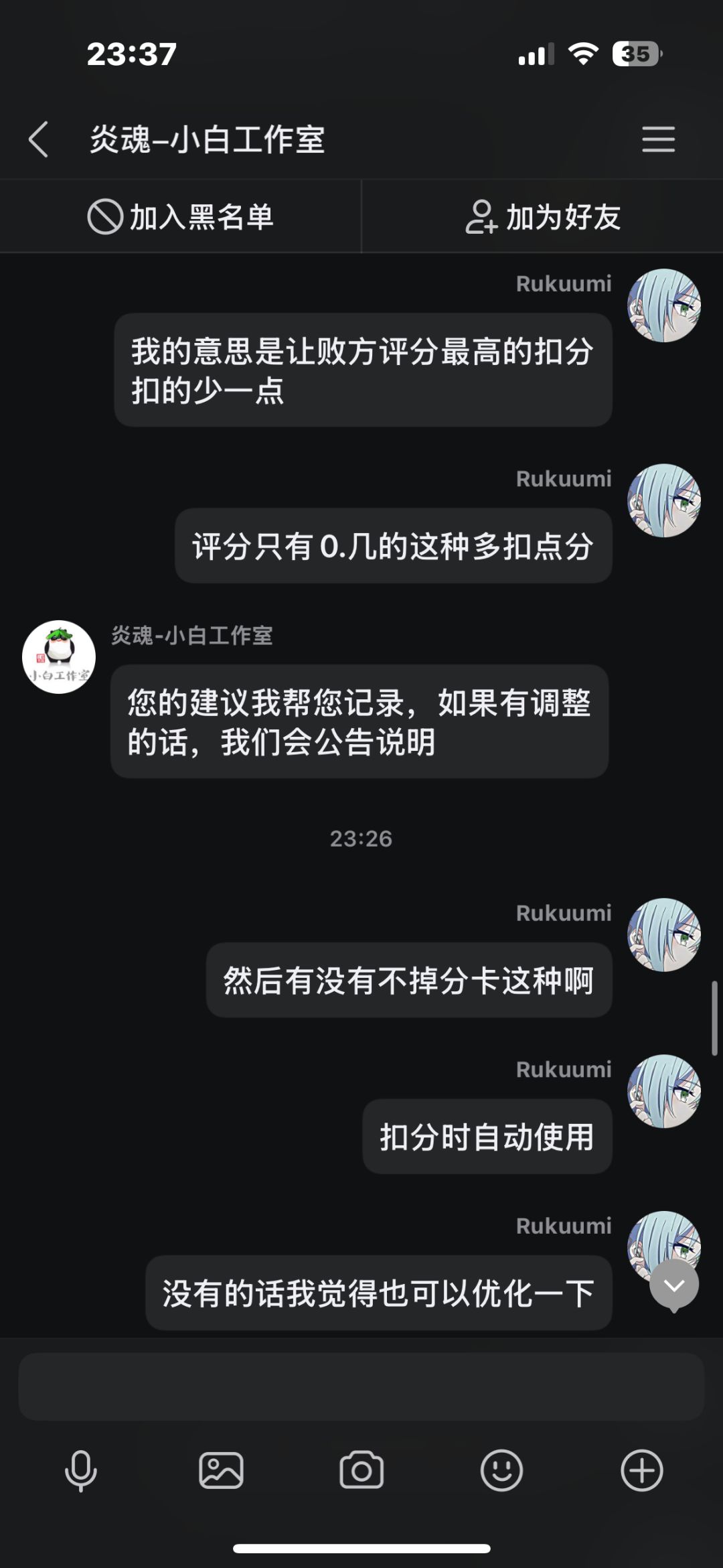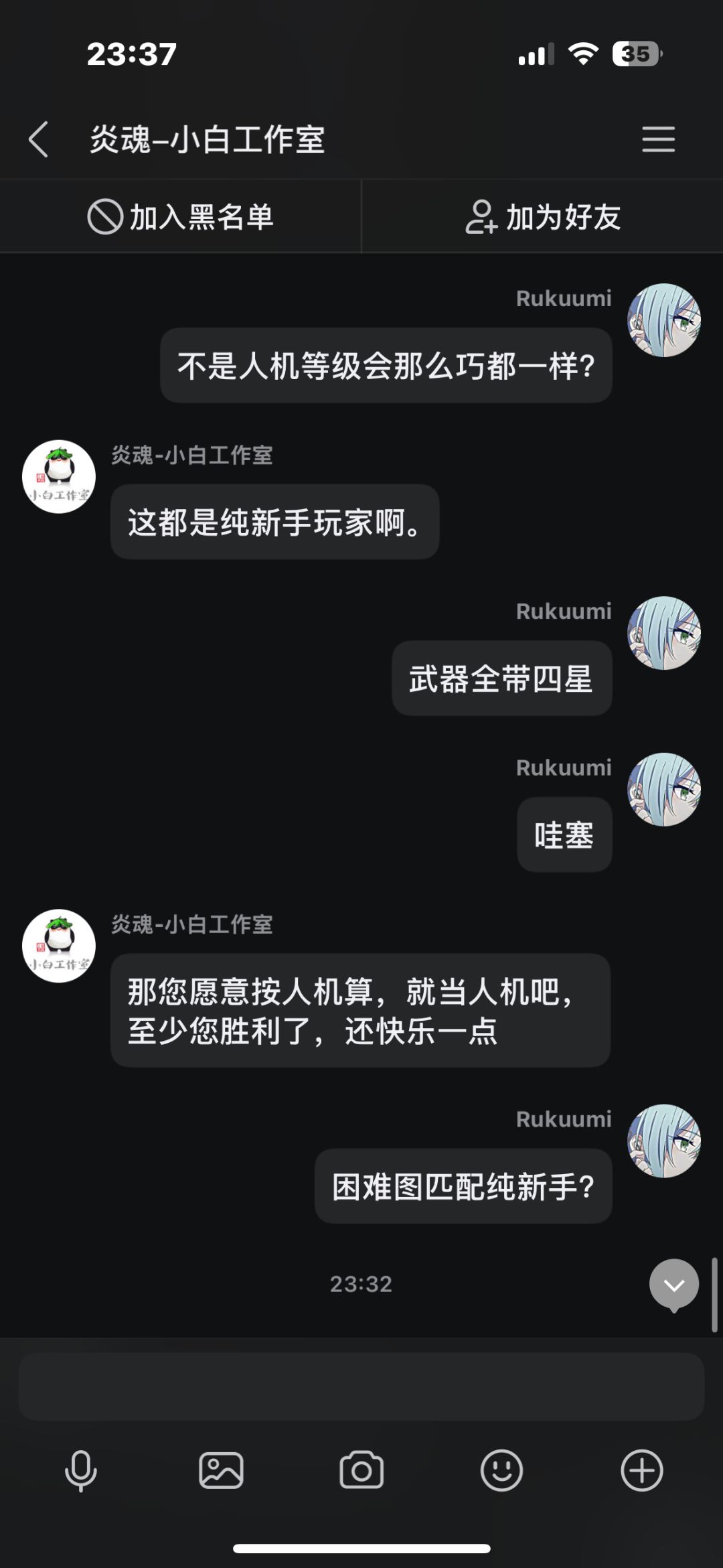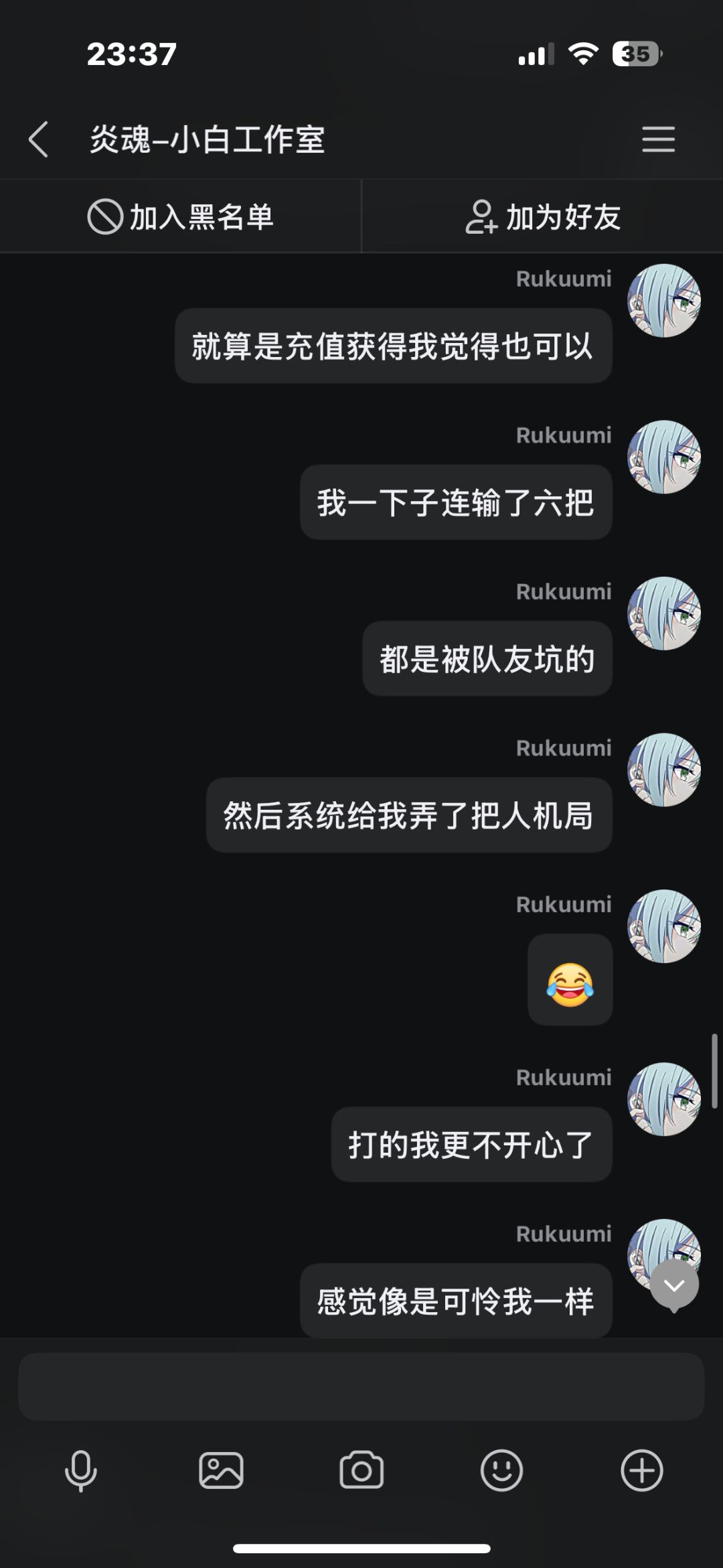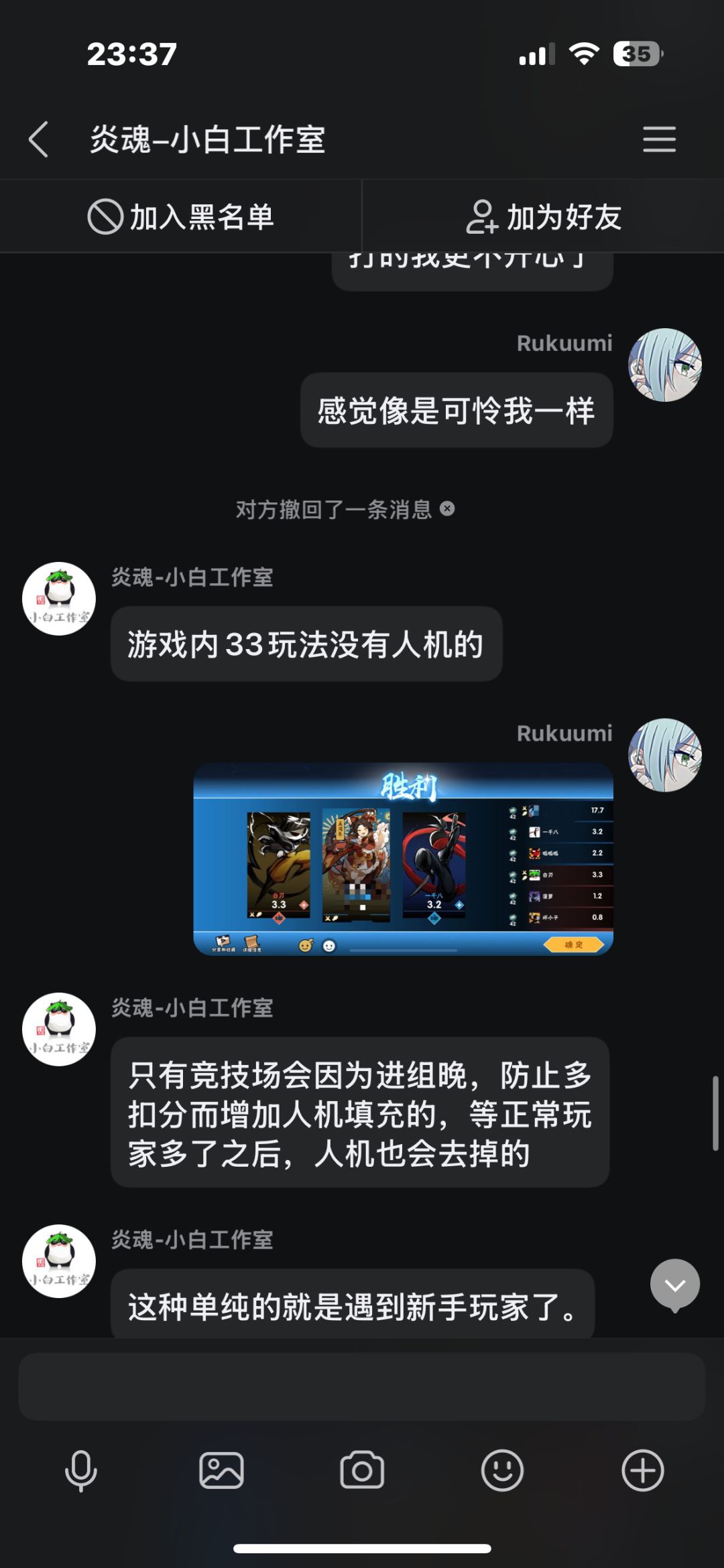 在先前我打了几把排位,中途有个两三天吧,每把都因为队友坑而掉段,我本身也是个回游玩家,打几把排位连续输,后面给我干红温了,结果给我匹配了把人机,跟可怜我一样,我不爽这忍三的扣分机制,就去找客服理论,结果客服不但不安抚我的情绪,反而暗戳戳的戳我的感觉(个人感觉反正让我很不舒服),后面我说了一些我的建议,他给我一一反驳了,给我的感觉也是态度很不好啊,后面我说匹配到五个人机这件事,他硬说这不是人机,我看这点也快下班了,也不想和他多说什么了,这客服我觉得得换换,没有之前态度好了