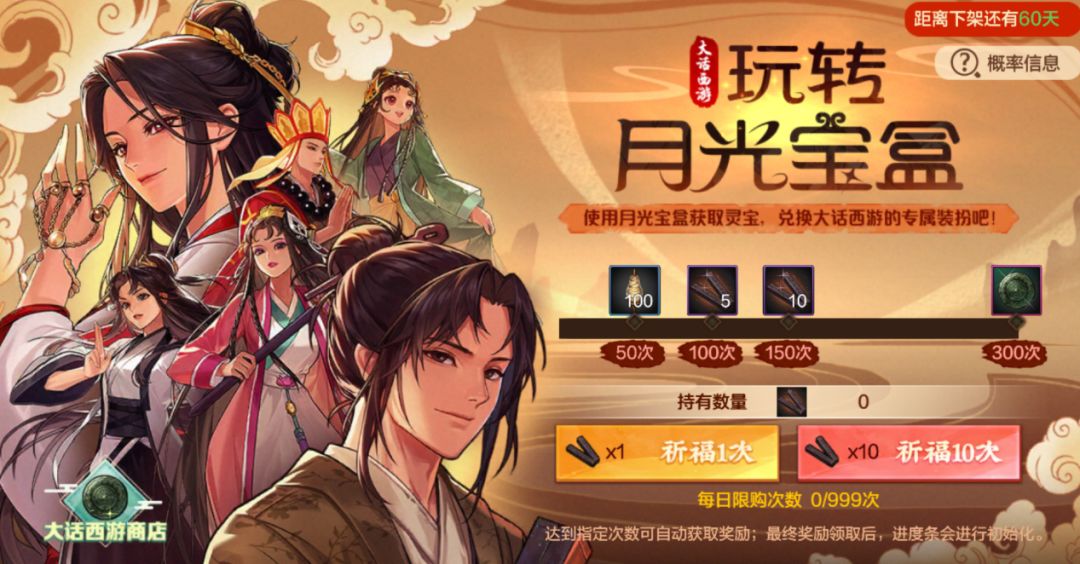 〔3〕76.8%几率,抽到5/1个灵宝,但是5种道具随机1,获取几率减3/5,只有30.78%。