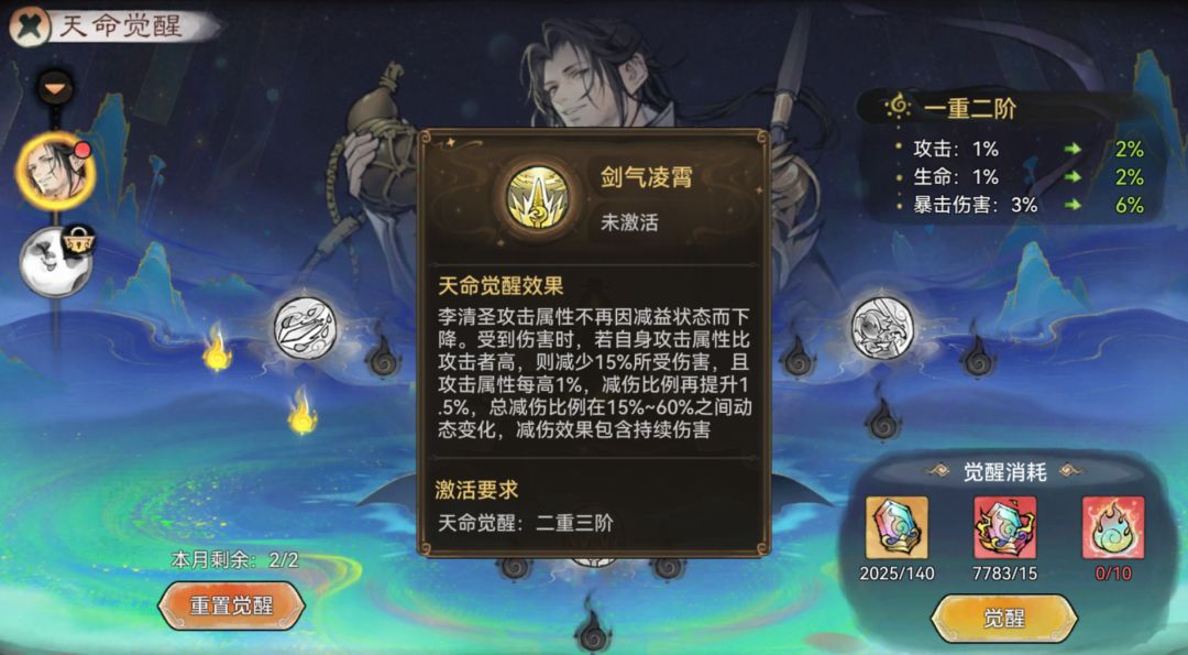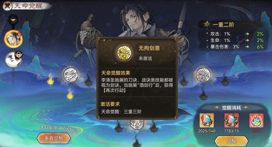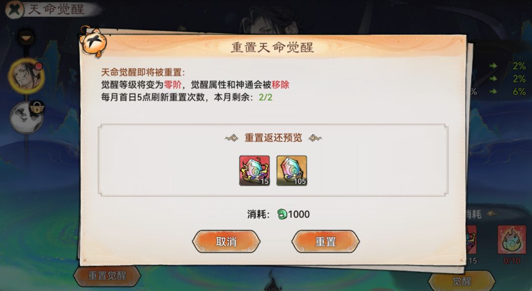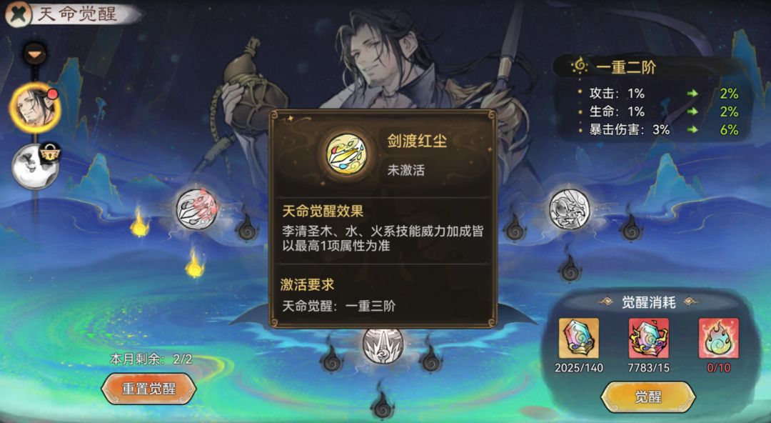另外,祖师还可通过消耗灵玉重置天命觉醒,每月有2次机会。