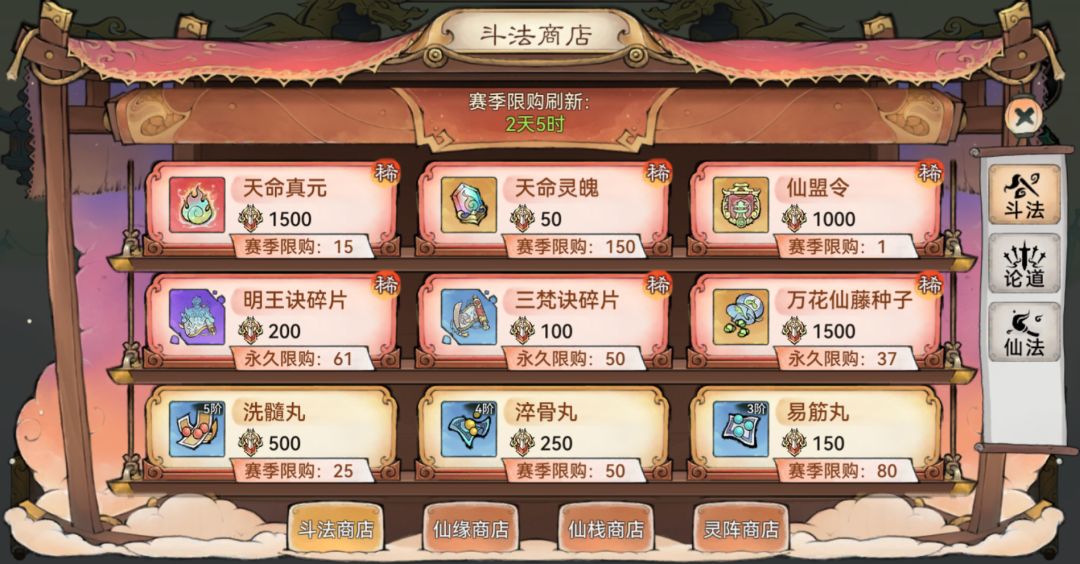 其中,天命真元可通过斗法商店和仙宫宝库获取。