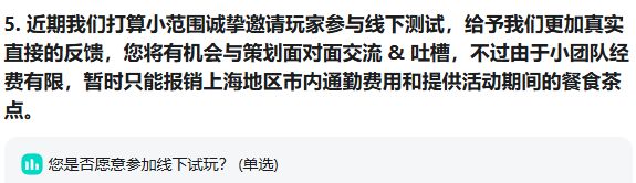 还记得之前的帖子中有一项关于「您是否愿意参加线下试玩」的投票吗?