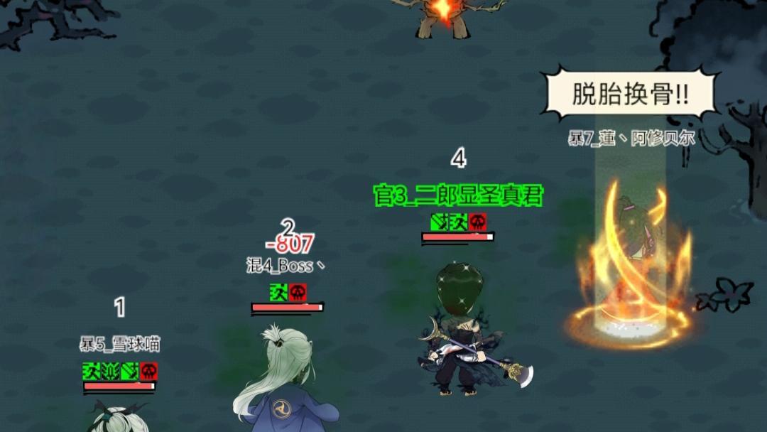 达到一定血量(大概半血)boss会分身,此时一定要注意了!!!你需要找出他的真身在哪里。真身隐藏在分身里,真身和分身的区别在于,分身只能打50的伤害,真身能够打1000的伤害,只能攻击真身!!!