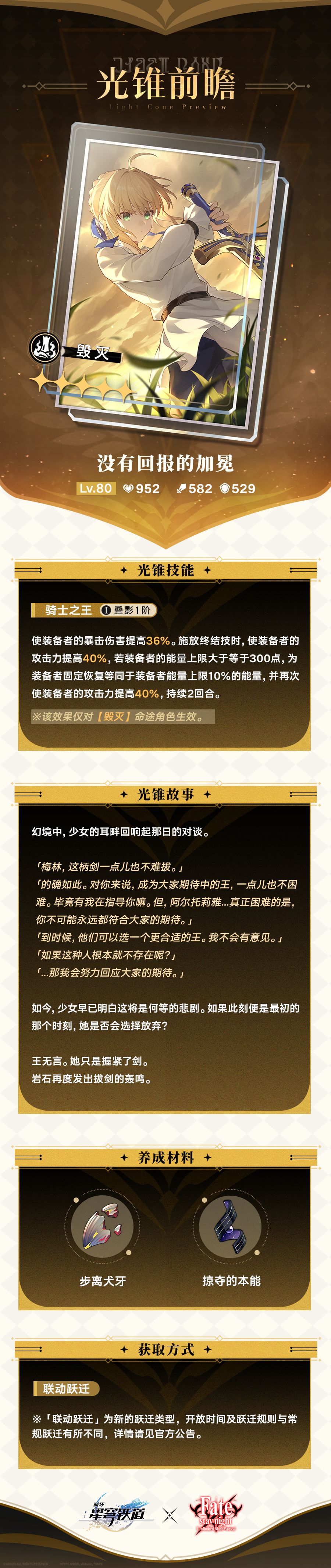 开拓者好呀,一起来看看联动限定光锥「没有回报的加冕」的光锥前瞻~