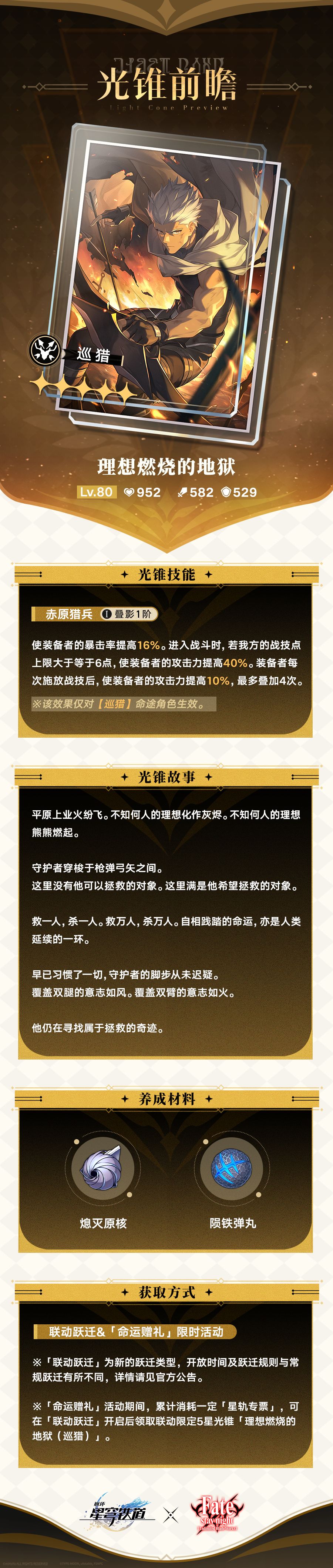 开拓者好呀,一起来看看联动限定光锥「理想燃烧的地狱」的光锥前瞻~