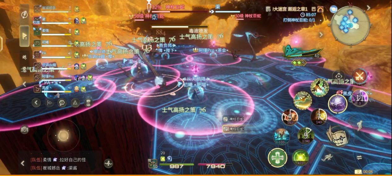 喷毒:点名一人,随后在被点玩家脚下生成绿色圆形aoe毒圈,请远离人群放置