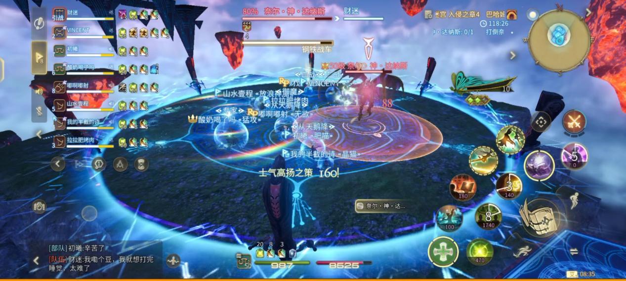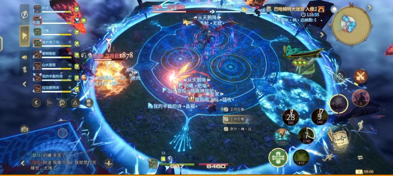 百万核爆:打完三个巨像后boss出现倒计时,10秒后释放全屏高伤害aoe,奶妈注意回复,释放后场地变更为红色,随后奈尔使用月华冲对之前mt造成高额小范围aoe伤害,其他人需要远离双t