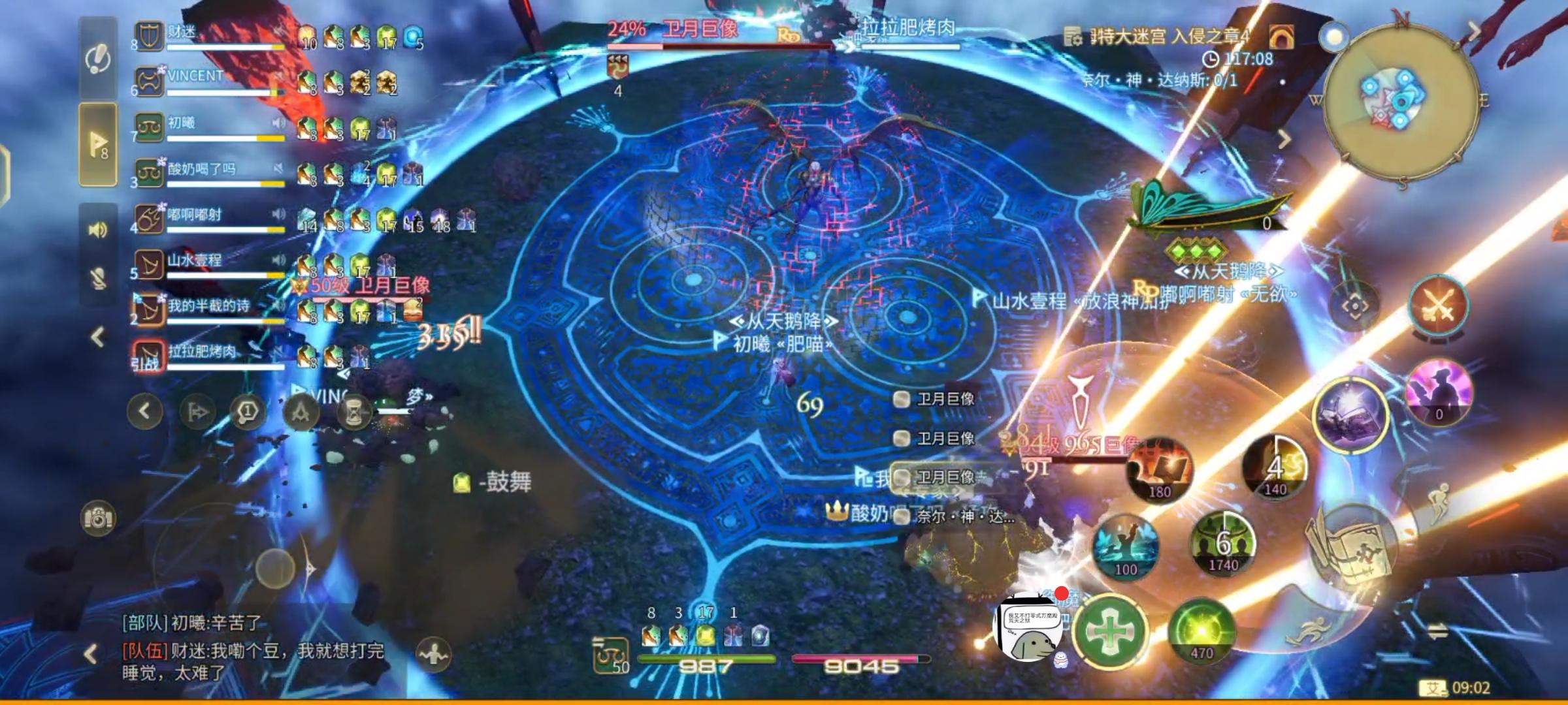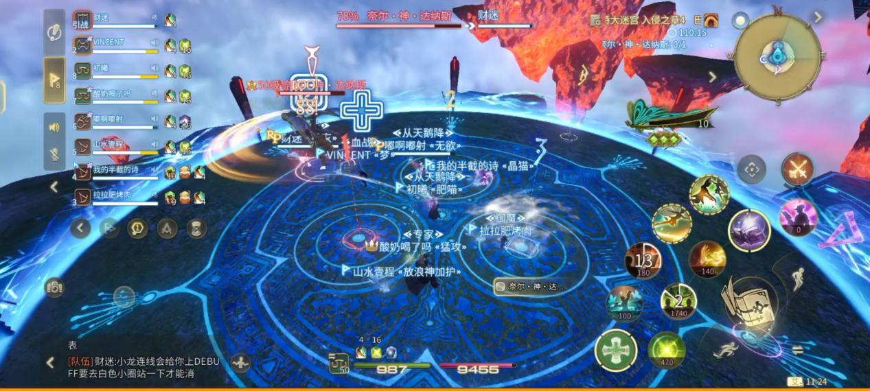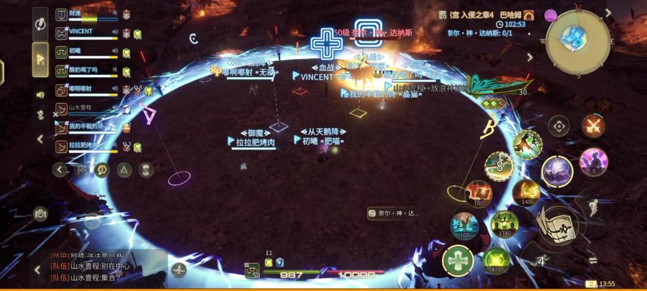 陨石流:boss上天并随机点名四位玩家释放的圆形aoe伤害,请大家分散处理避免吃到重复伤害