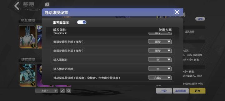 自动切换契灵怎么没有关底boss切换,狩猎,巨力和机械也没有,混点别的玩法船长岂不是要手动切