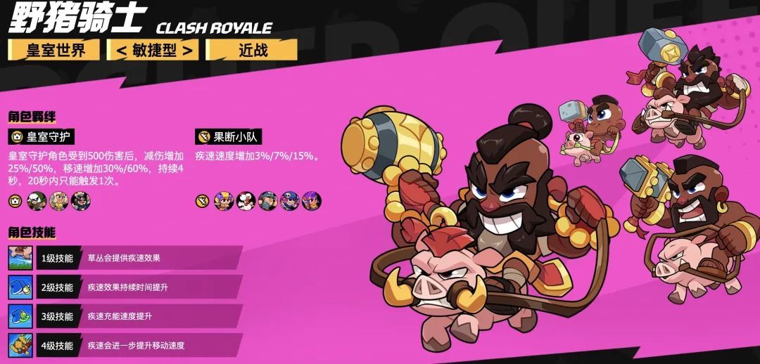 在游戏后期,我们要补满果断小队和荒野派对的羁绊,如果运气好再把皇室守护也补齐。此时我们就是完全体啦。