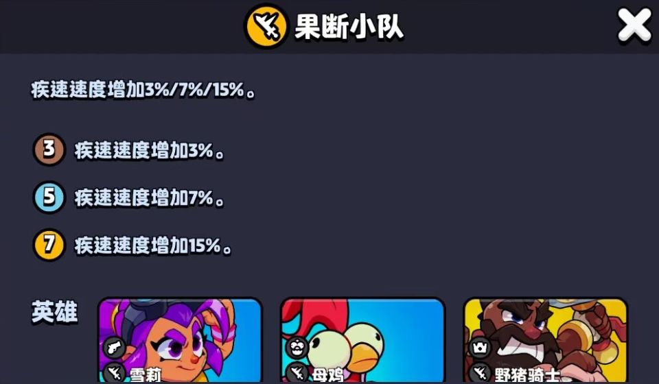这样开局的目的是为了凑齐一级果断小队的效果,让我们在初始速度上领先其他小队,并且利用野猪骑士加速的效果,获得更快的发育速度。