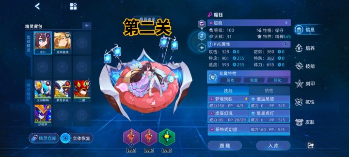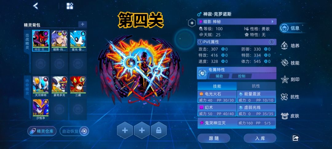 第四关无火绿火都行送克罗接眠降先三第五对点,第五无pp补pp,注意补pp前后先点先三。克罗无需求送死精灵,眠降三孔特攻体力,二孔也行,血量能保持不被粉死就行,带新兵套装防止眠降先三miss失败 。在此基础上尽可能堆特攻,第五粉伤与特攻挂钩。此关耗时间长,100回合以上不想打太久就堆眠降三孔以及冰冷高热特性,第二条命眠降打掉1/4血boss强化六级送死接下刻印鲁斯王克制即可。
