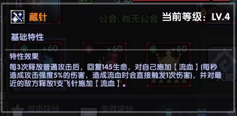 [刺壳]获得流血或者对敌人施加流血时获得一层刺壳,上限30层,共266%普攻伤害加成