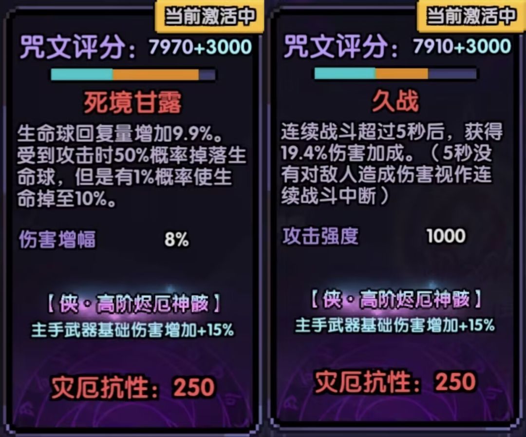 [核心](左半图)在打BOSS和内桩的时候,项链、戒指位置(对应上半图中右上、右的符文)携带“首领伤害”,打小怪秘境时携带“护盾伤害”,打竞技场时携带“攻击强度”