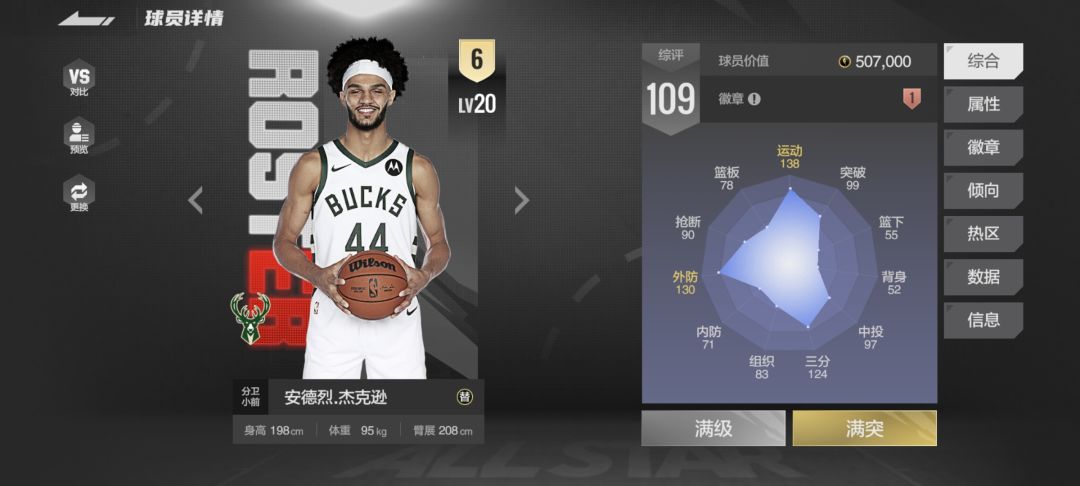 外防数值高,防守持球挡和挡拆