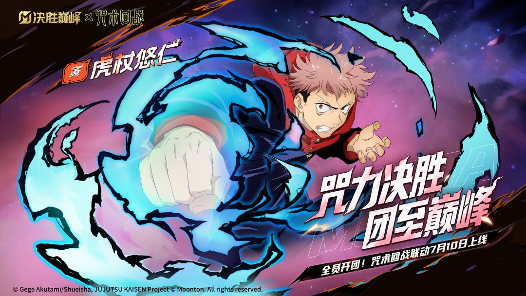 7月10日,《决胜巅峰》×TV动画《咒术回战》将正式开启!寅全新限时联动皮肤「虎杖悠仁」同步上线~