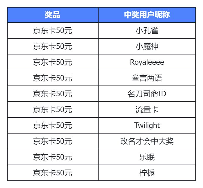 以下为本期活动获奖名单~