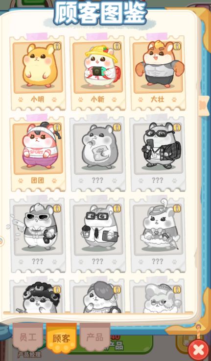 测试期间只要店长在图鉴内每解锁一名员工或者是顾客都能获得钻石,每解锁一个新产品都能获得一点体力,各位店长记得多多研究新品和招募员工哦~