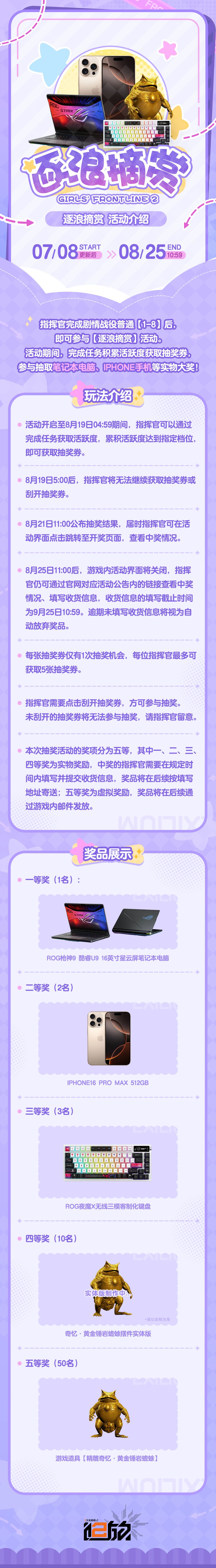 活动期间,完成任务积累活跃度获取抽奖券,刮开抽奖券即可参与抽取笔记本电脑、iphone手机等实物大奖!