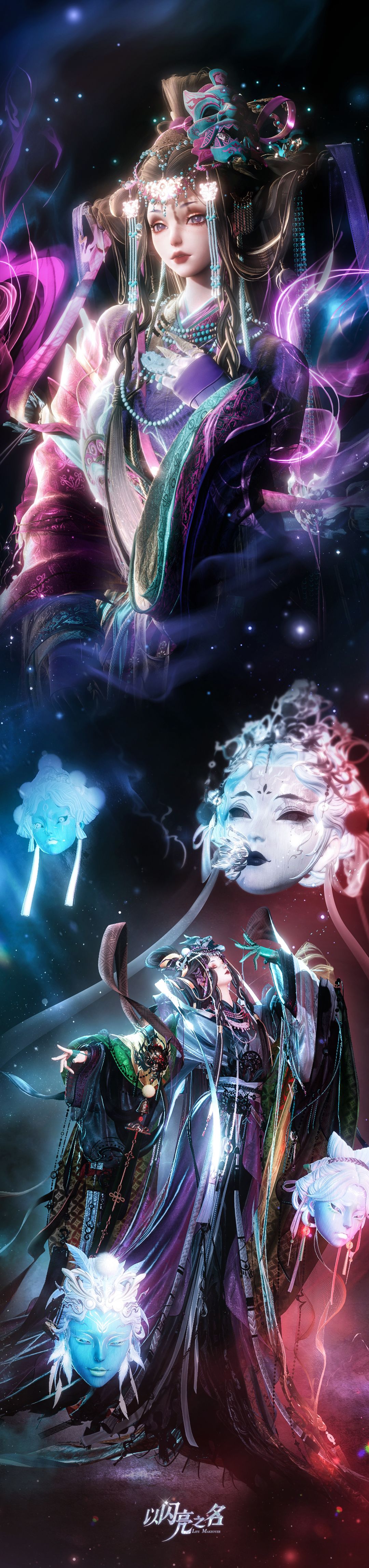 被誉为戏剧活化石的傩戏,历经千年传承,是先民与天地神鬼对话的文化载体。此次全新版本,《以闪亮之名》特邀非遗傩面具雕刻工艺代表性传承人杨云霞老师深度参与,将傩戏驱邪纳吉的仪式内核与中式志怪的美学想象,通过数字技术转化为可交互的六星时装玄绛舞祓。