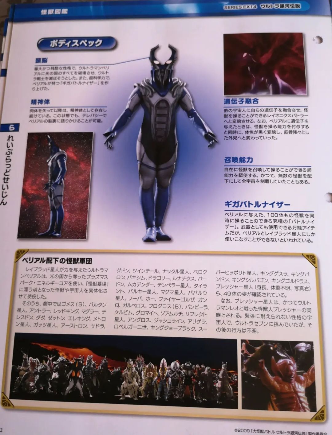 是《奥特曼》系列中登场的反派角色,曾经率领怪兽军团统治全宇宙的邪恶宇宙人,就连异次元人亚波人和地狱星人希波利特星人等敌役都对其感到恐惧。过去有数万年的时光统治过整个宇宙,自身实力极强!现在是以精神体状态出现在宇宙各地,作为雷奥尼克斯格斗的幕后黑手在暗中活跃着。为了选择后代让雷奥尼克斯自相残杀。但最后在自己支配的雷奥尼克斯格斗中被雷蒙与格朗迪合力击退。身高:不明体重:不明